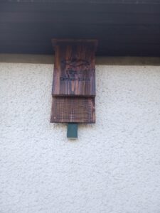 Par contre, effectivement, le fil à linge peut être un frein à leur installation. Autre chose : l’équerre qu’on distingue en bas du nichoir ne doit absolument pas dépasser du bois de la planche d’envol. En cas de doute, faites le test de l’éponge pressée sur la planche : si les gouttes tombent sur le métal, la chauve-souris ne prendra pas le risque !